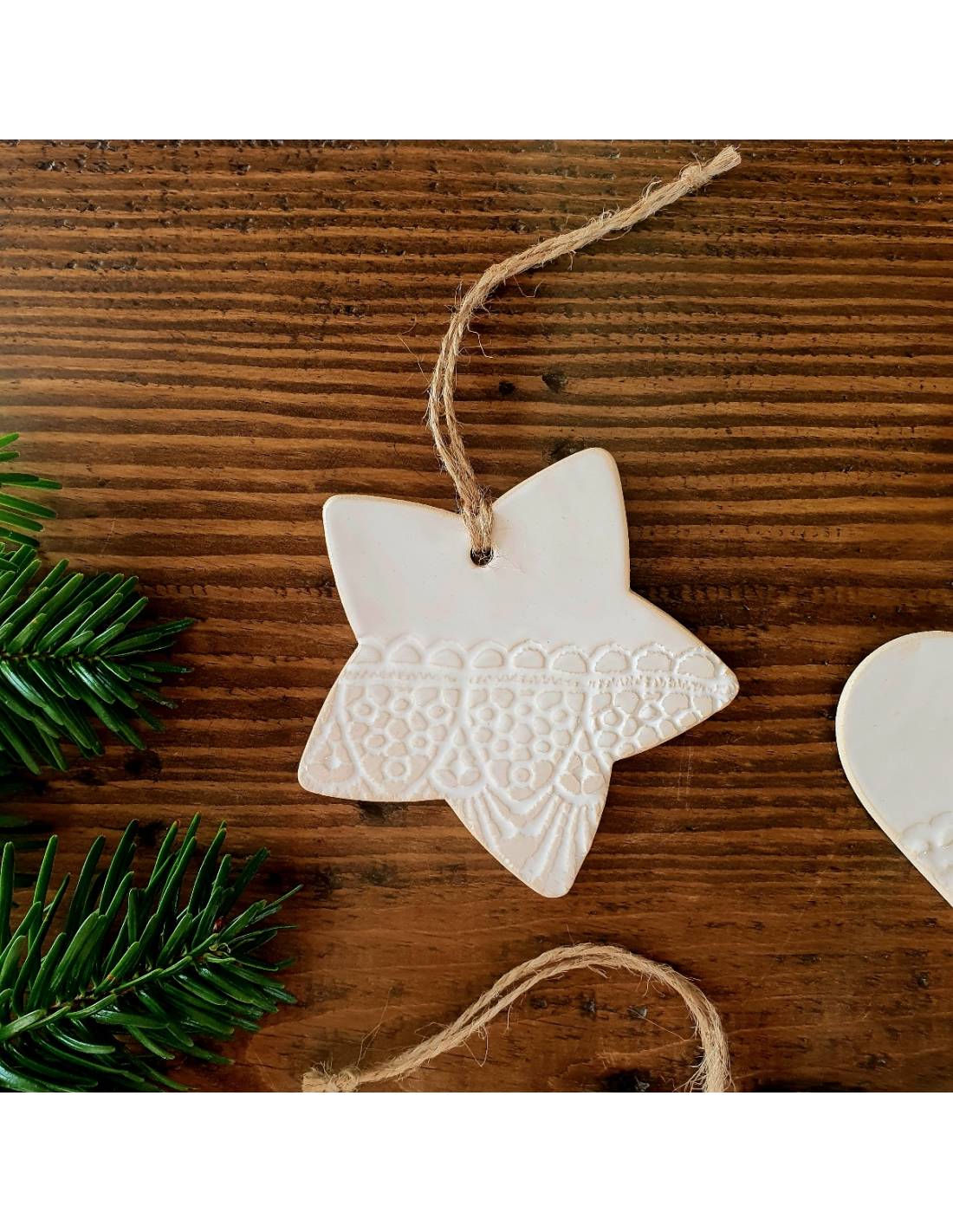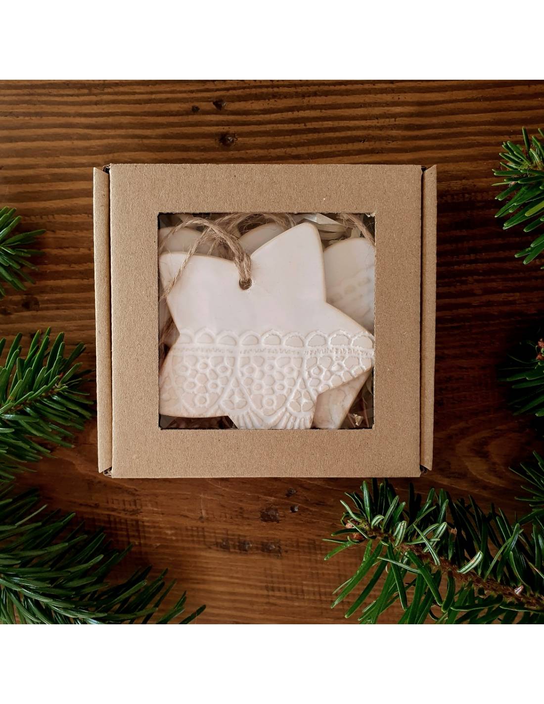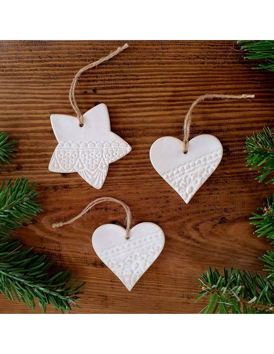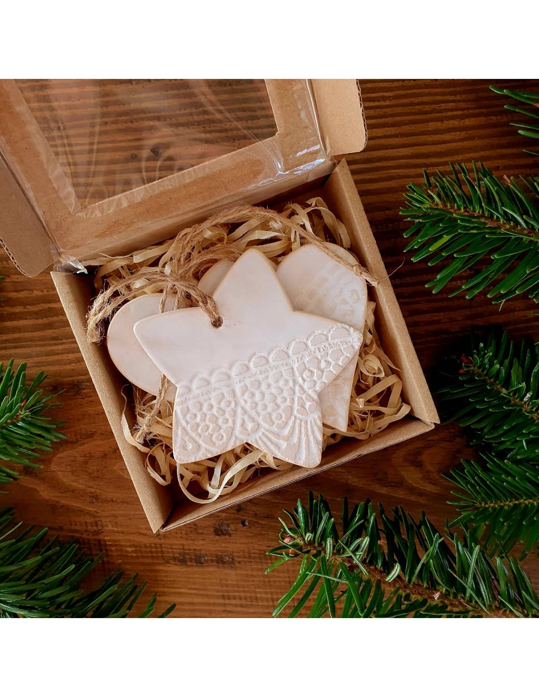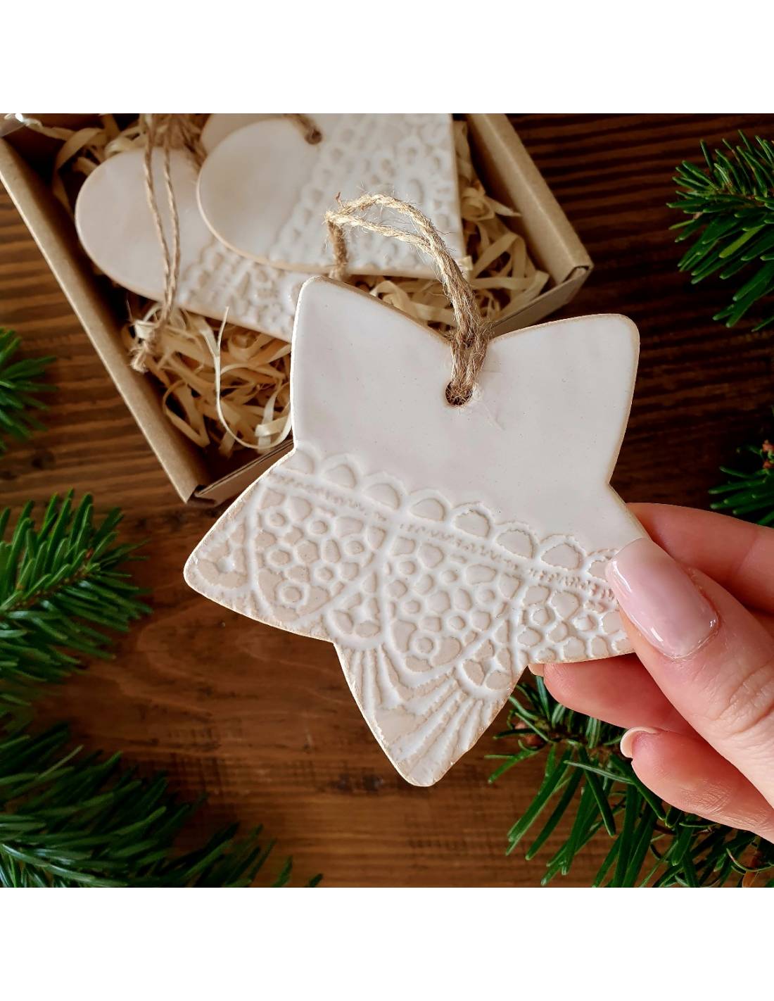 Ceramiczny zestaw zawieszek choinkowych "Biała Koronka 1"